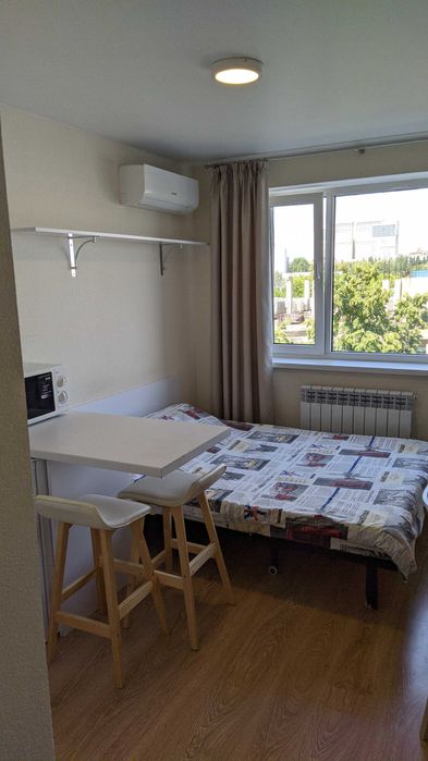 В квартире есть всё: Встроенный шкаф, кровать двухспальная, бойлер, душевая кабина, холодильник, стиральная машина, микроволновая печь, электро чайник, телевизор, кондиционер, гладильная доска и сушка для белья, утюг, набор посуды и столовых приборов, постельное бельё и полотенца, WI-FI, вся техника новая.